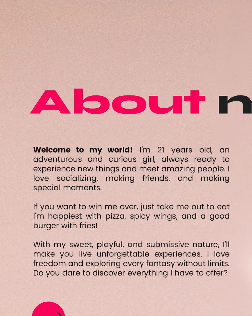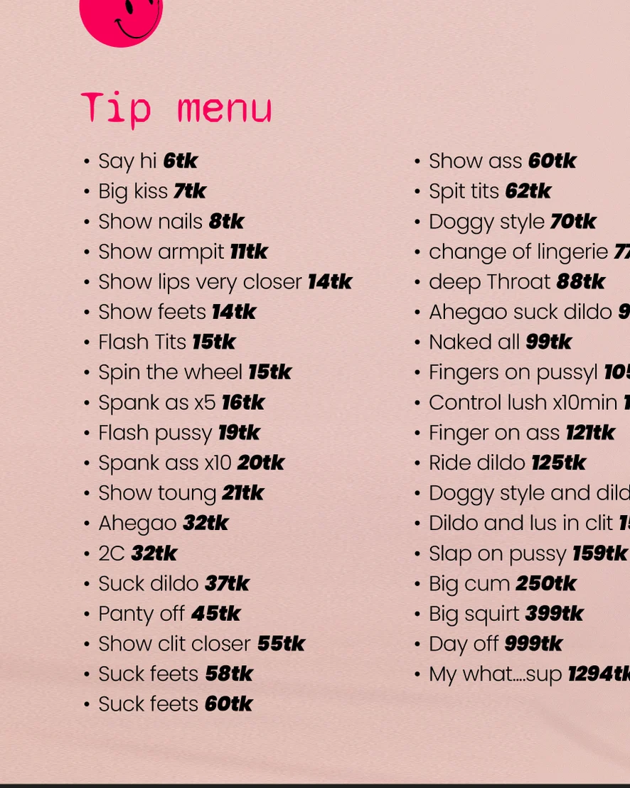 Facesitting, Humiliation, Deepthroat, Orgasm, Yoga, Topless, Cowgirl, Upskirt, Ahegao, Dildo or Vibrator, Jerk-off Instruction, Role Play, Masturbation, Tittyfuck, Blowjob, Oil Show, Doggy Style, Spanking, Erotic Dance, Cock Rating, Fingering, Dirty Talk, Striptease, Foot Fetish, Flashing